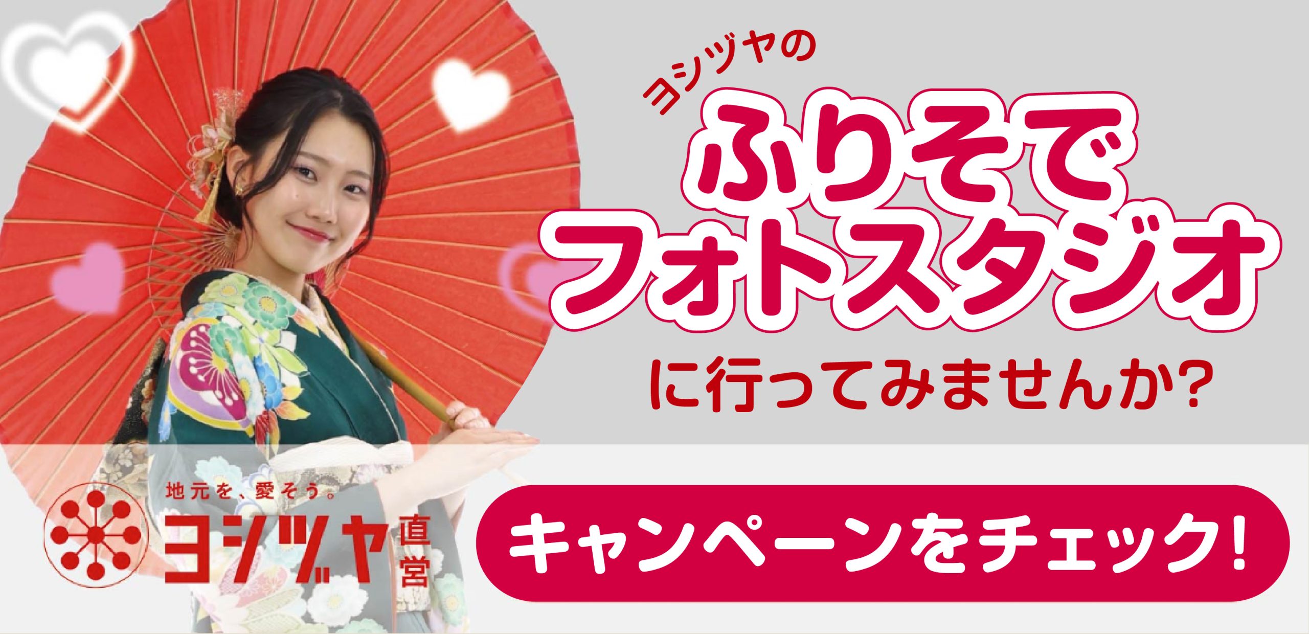 ヨシヅヤ直営だから安心!🫧 『ふりそで フォトスタジオ ヨシヅヤ』 . 地域の皆さまへの日頃の感謝を込めて、 アルバム・撮影・振袖一式全て込み込みで 💖「99,800円」(税抜)💖 特選振袖からトレンドの柄まで100枚以上をご用意✨ 成人式はぜひお任せください🪽 .