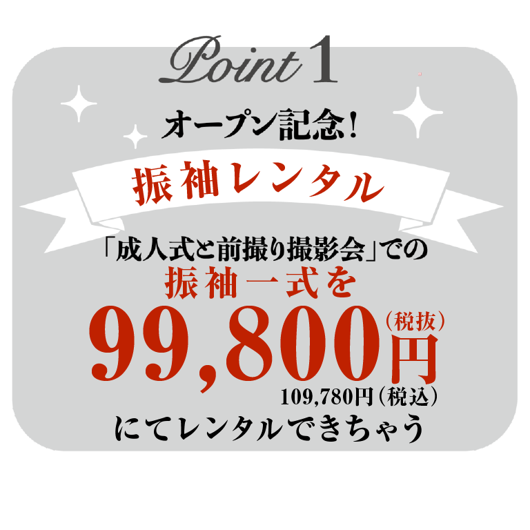 この度は高評価を頂きまして誠にありがとうございざいます呉服屋が行っている写真館なので振袖には自信があります。振袖レンタル100円は大変好評なキャンペーンなので、大勢のお客様に喜ばれております。素敵な成人式になるようにサポートさせて頂きますこの度は誠にありがとうございました